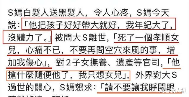 距大S因病去世已经过去了26天,S妈的态度却截然不同于之前的激烈。