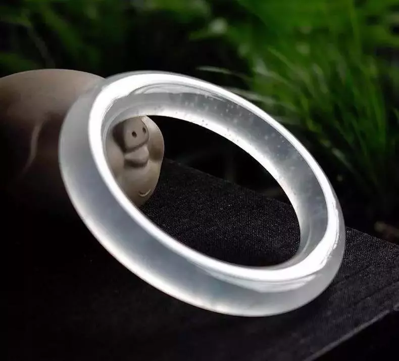 种水镯虽然色差一些,但它玉质细腻,水头清冽,玉化程度更高,更具备翡翠珠宝的特征。