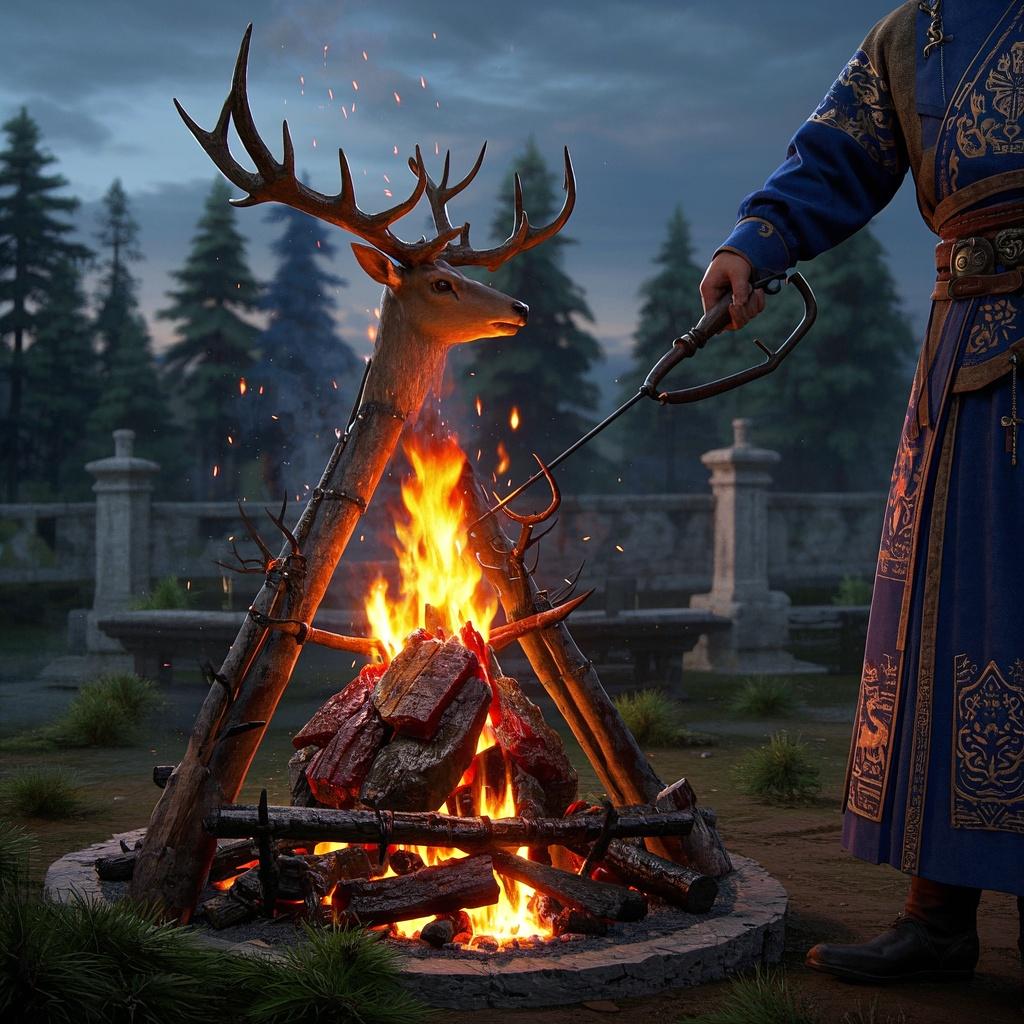 在承德避暑山庄北侧的古猎场遗址,国家级非遗"满蒙炙烤技艺"第五代传人金永昌近日复原了清代乾隆年间皇家"篝火炙鹿宴"。这场遵循古法的烹饪展示,通过三小时文火慢烤完整重现了《御茶膳房档》记载的"炭火三煨"技法,吸引近五万网友在线观摩。