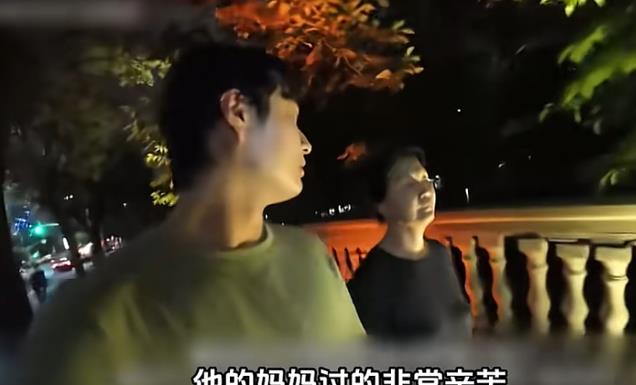 吃饱喝足之后,小伙带着妈妈在街头逛了逛,就这么一直逛到了晚上,两个人来到一家大排档解决晚饭。