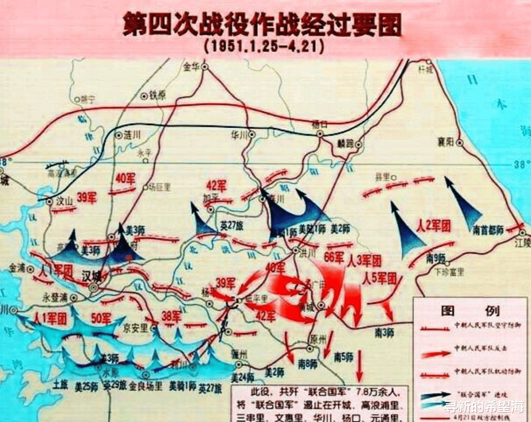 当时,第四次战役已接近尾声,到4月里,“联合国军”已被阻击在开城、长湍、高浪浦里、文惠里、华川等地。