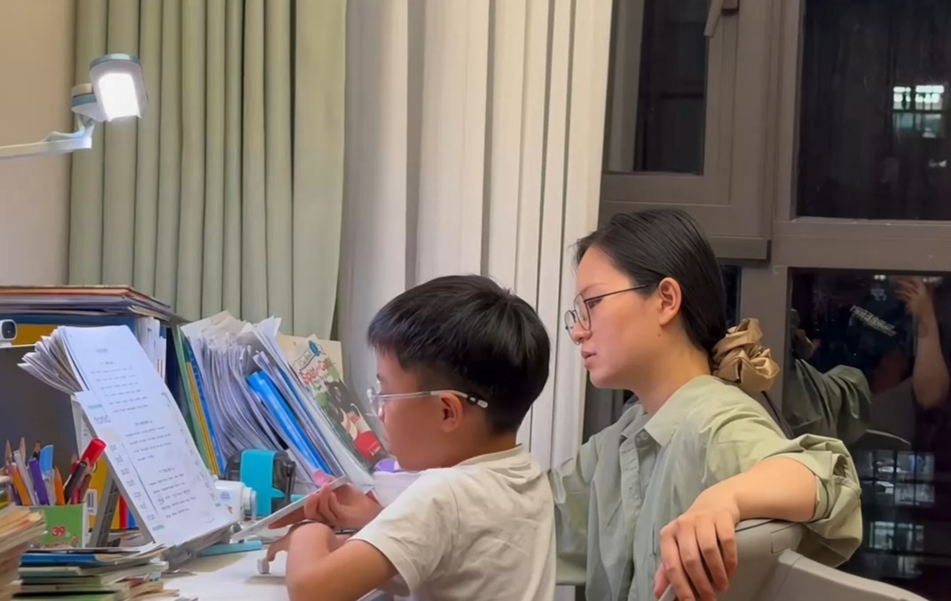 每天早晨5点半起床准备早餐,盯着孩子早读、背单词,赶在早高峰前送他们到校;