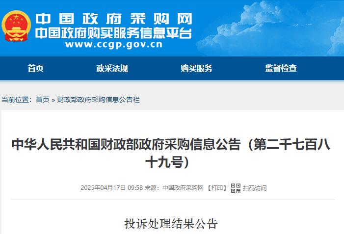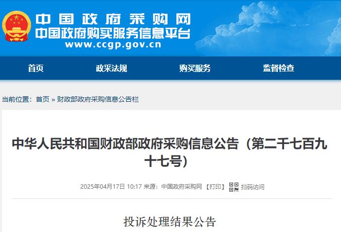 第二千七百九十三号公告显示,投诉人北京某科技股份有限公司因对国采中心就内蒙古自治区巨灾防范工程通用信息化设备采购项目作出的质疑答复不满,向财政部提起投诉。投诉事项:该项目符合性审查错误。