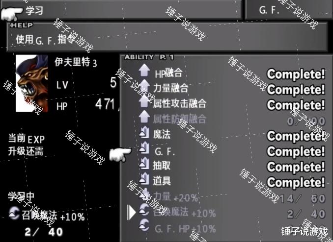 GF(守护兽):游戏中核心的战斗伙伴通过击败或剧情获得,每个GF不仅拥有强大召唤技更是角色能力成长的基石,将不同的GF装给队员,习得HP-J力量+等核心指令和能力