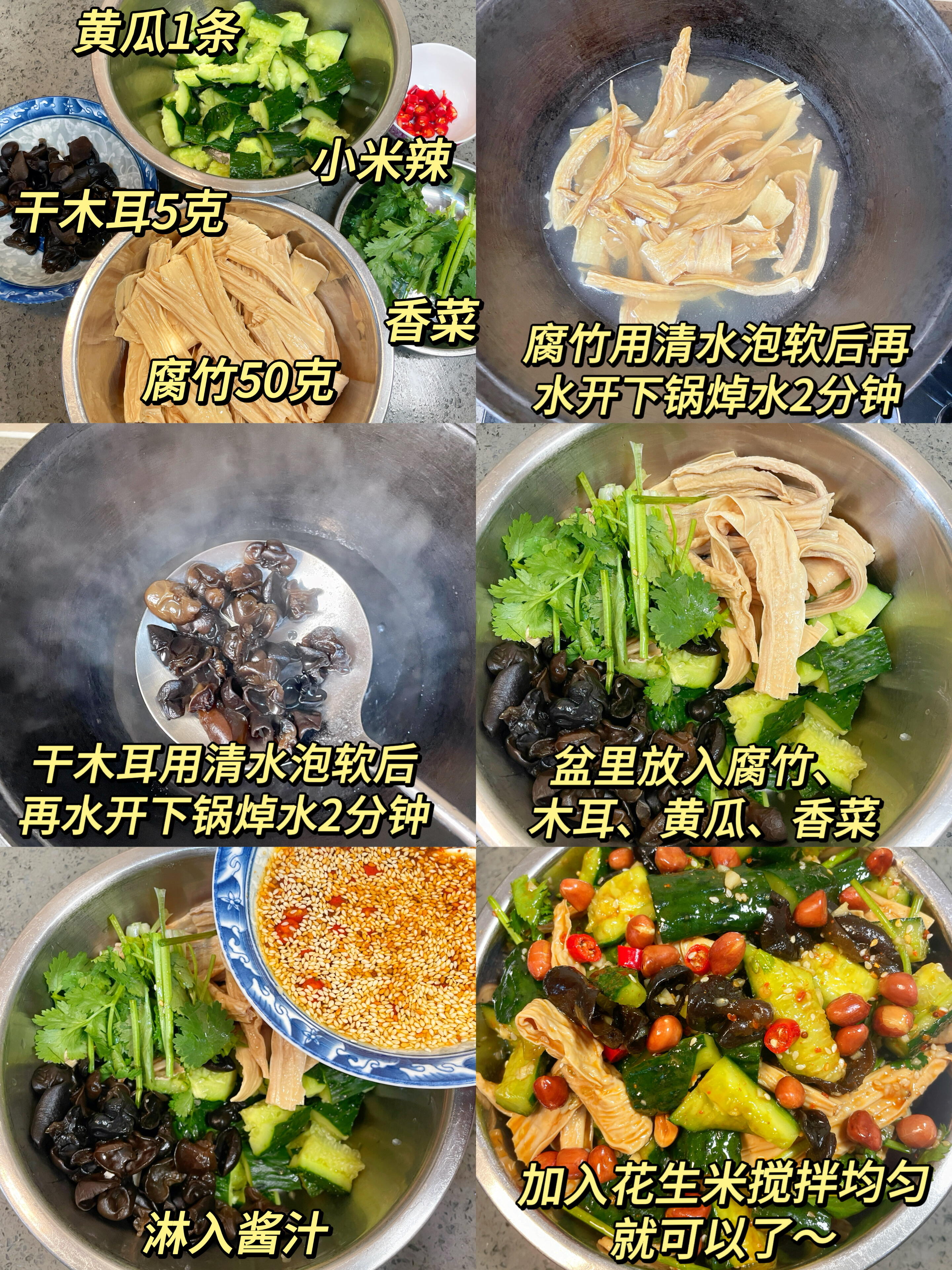 • ✅ 记住“黄瓜拍扁腌+腐竹木耳焯水+热油激香酱汁”,保证你做的凉拌菜秒杀外卖!