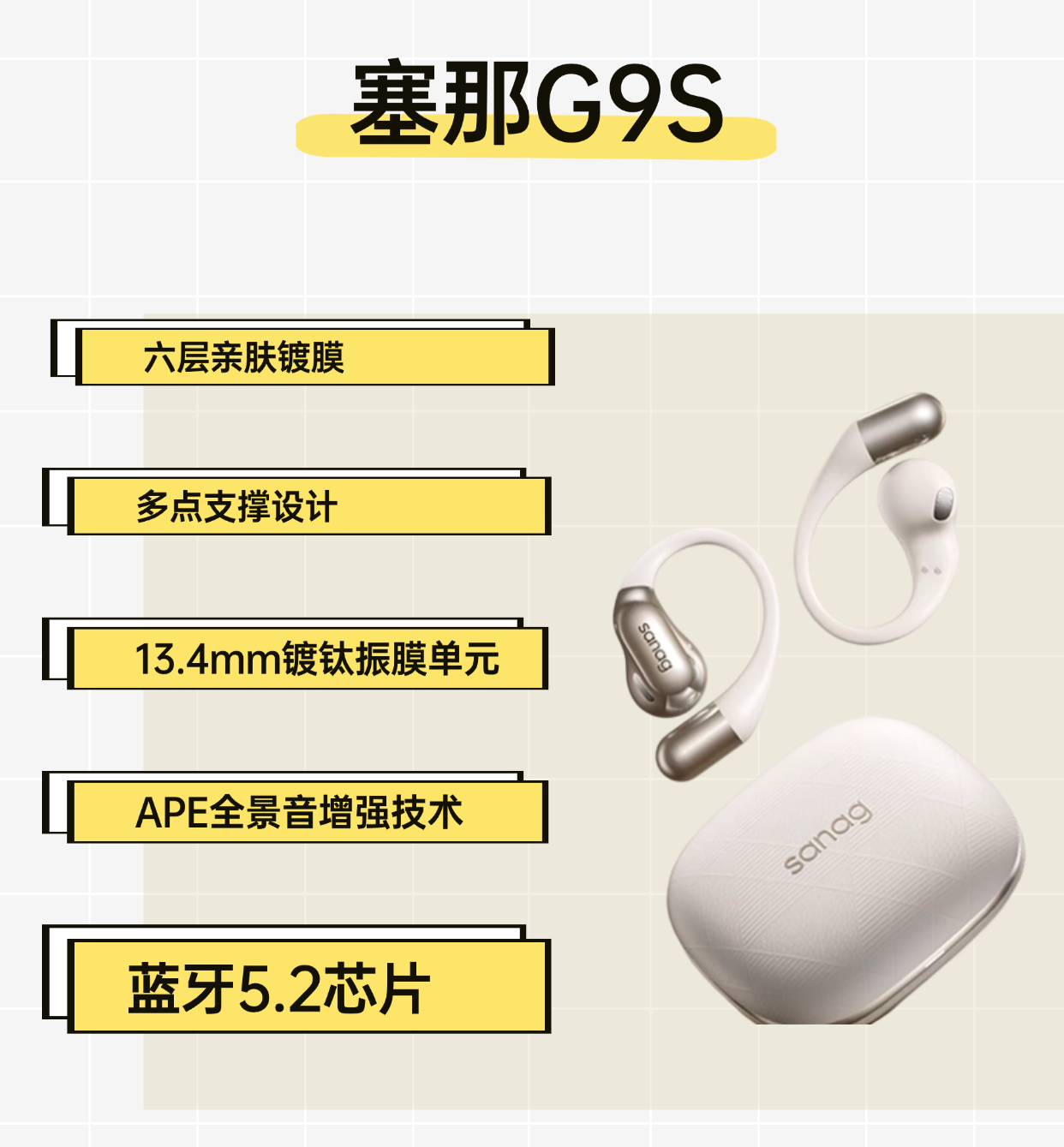 佩戴体验:采用五点贴合结构来支撑你一整天的佩戴舒适感,长期佩戴不会出现压迫感,不仅带来稳固贴合还带来了自适应贴合耳廓,加上采用钛合金记忆钢丝对耳廓更加服帖,就算是大幅度运动都不会出现位移,可以做到狂甩不掉落