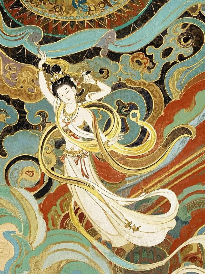 敦煌研究院首任院长常书鸿在《敦煌艺术志》中提出:"这是将印度神祇'中国化'的重要标志——用飘带取代双脚,既符合道家'羽化登仙'的审美,又强化了飞天超越凡尘的神性。"