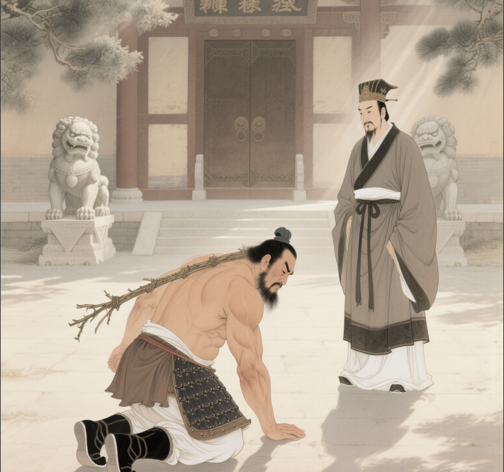 这位久经沙场、英勇无畏的老将,在听到蔺相如的肺腑之言后,立刻意识到了自己的狭隘和错误。他为自己的鲁莽和嫉妒而懊悔不已,决定向蔺相如请罪。于是,廉颇赤裸上身,背负荆条,来到蔺相如府前。他见到蔺相如后,立即跪地请罪,诚恳地说:“我廉颇见识浅薄,心胸狭隘,不知先生如此宽厚待人,以国家为重,实在是惭愧至极。今日特来请罪,任凭先生处置。”蔺相如见廉颇如此真诚,深受感动,急忙上前扶起廉颇,说道:“廉将军,快快请起。您我二人皆为赵国栋梁,只要我们齐心协力,赵国定能繁荣昌盛,秦国便不敢轻易来犯。”