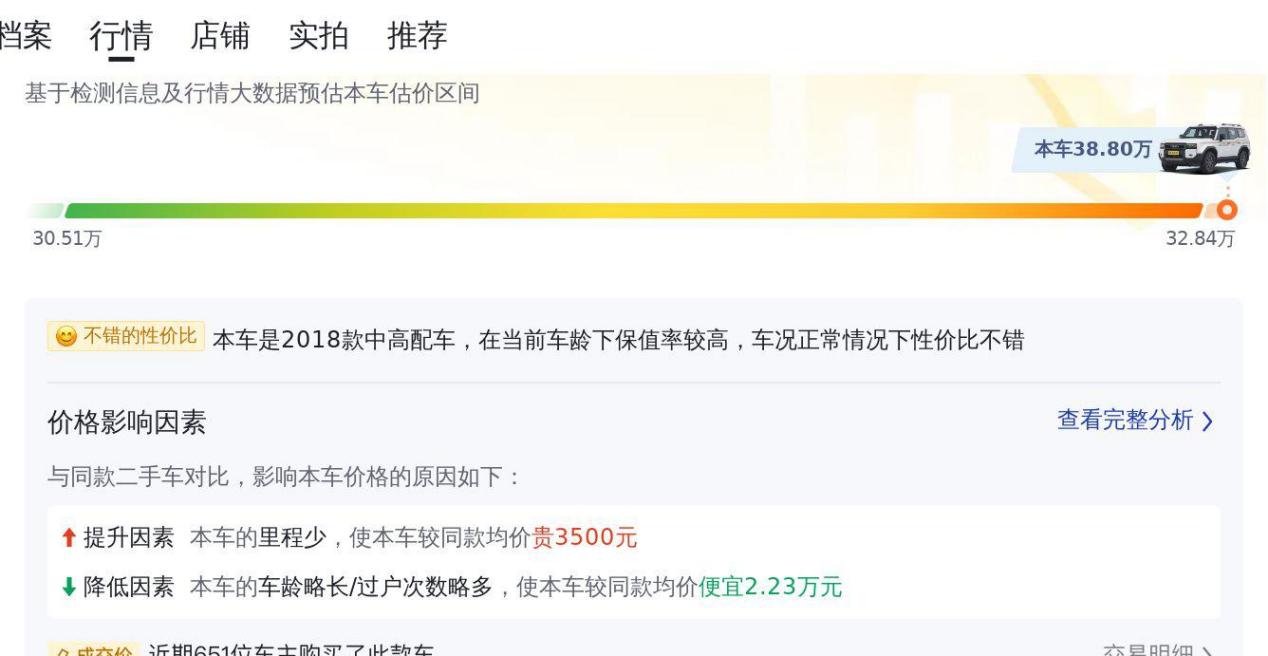 我们再来看看市场行情。 根据一些二手车平台的数据,2018款普拉多的价格普遍在35-45万之间。 具体价格还要看车况、配置、里程等因素。 这辆车报价38.8万,处于市场行情的中等水平。 考虑到车况和过户记录,还有进一步议价的空间。