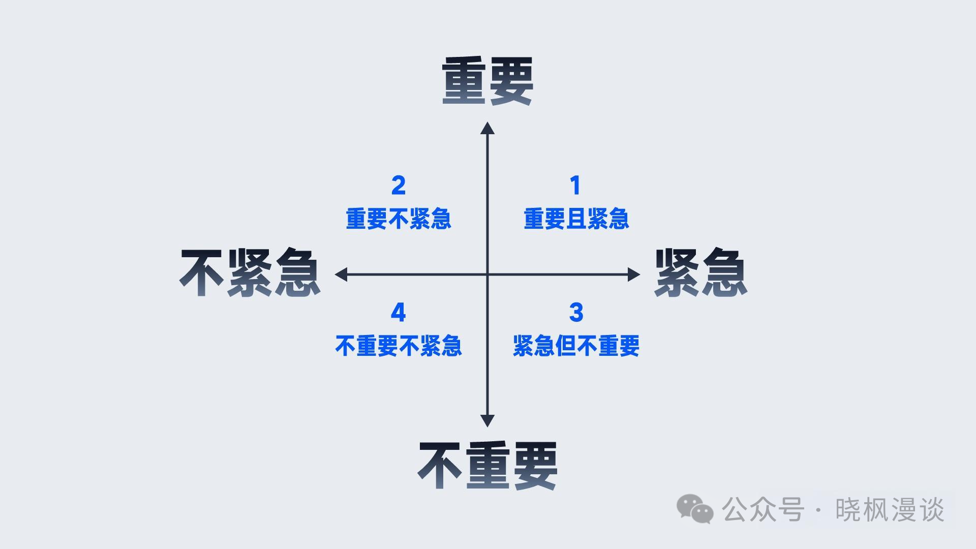 如果现在不重视,它随时会发展成重要且紧急的事情,所以要有计划地做,把它分解成小任务每天做一些。而紧急的事情是比较有迷惑性的,有时也是我们忙碌且盲目的源头。