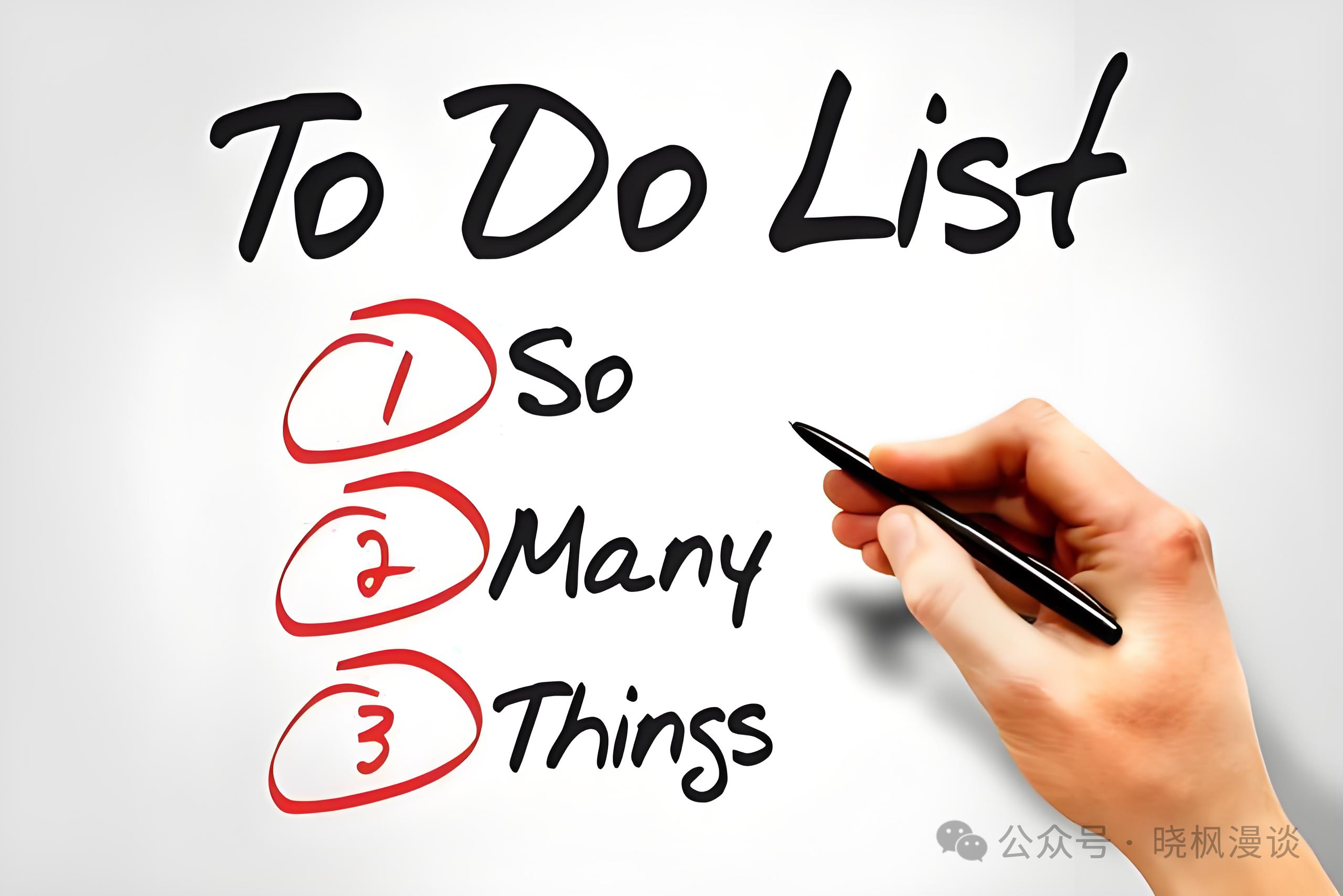 2. 针对费时费力但及其重要的事情要有计划地完成,学会拆解成很多件小事,每天花一些事情完成一个小目标,循序渐进地完成,做到未雨绸缪。