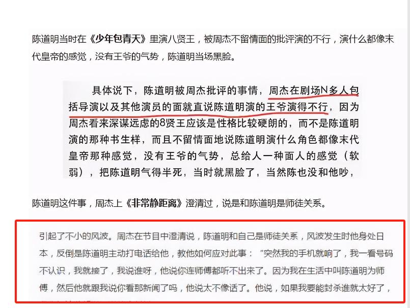 后来周杰接受采访的时候,把这些事儿都说清楚了。他说自己一直很崇拜陈道明,根本不可能说他演技不好,而且他们俩是师徒关系,哪有像外面传的那样。陈道明也出来说话了,他说要是自己真能随便封杀一个演员,那第一个就得封杀那些乱造谣的媒体。