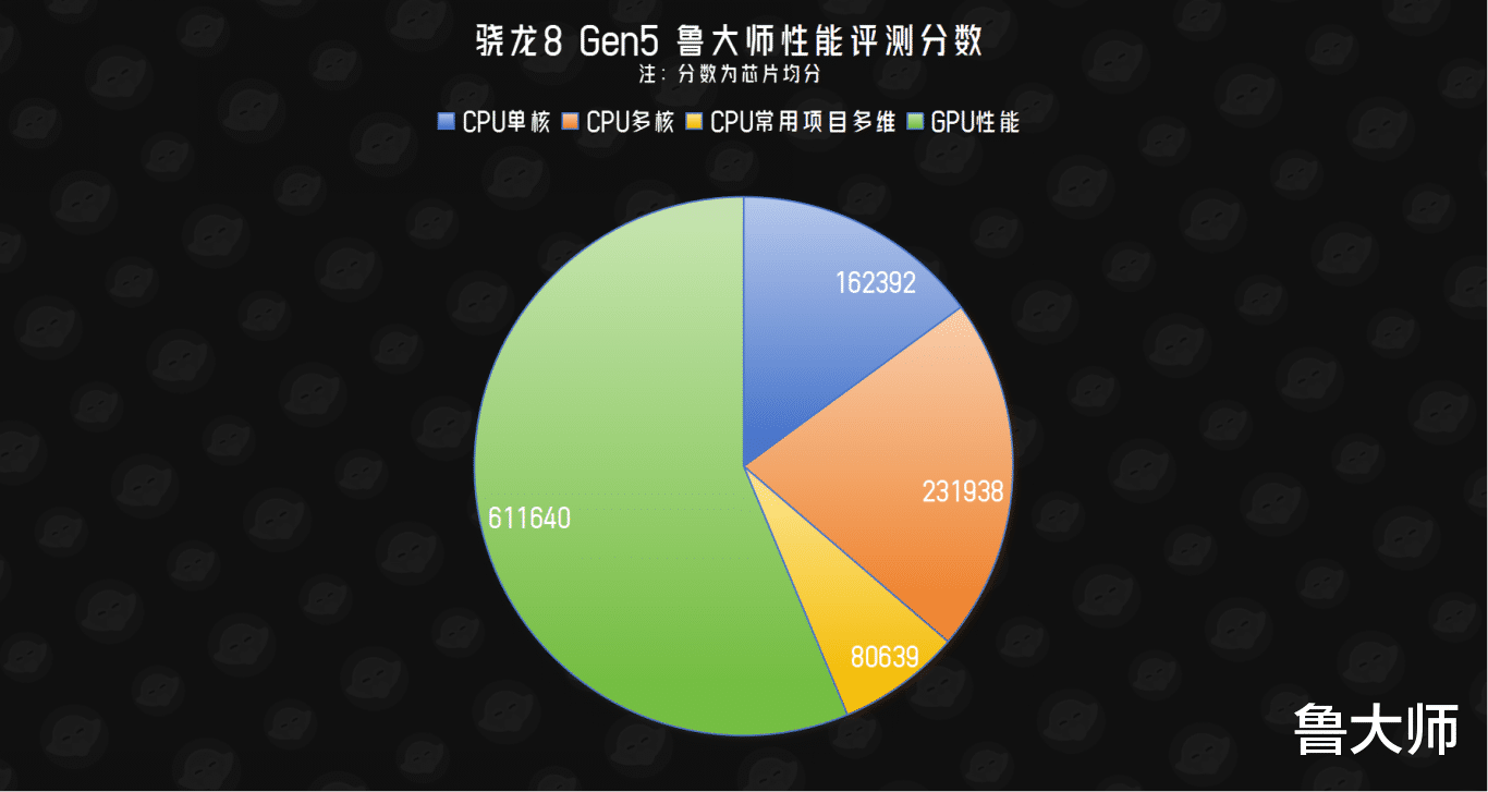 8 Gen5目前在鲁大师性能评测中,芯片性能总分为1086608,其中CPU单核性能162392分、CPU多核性能231938分、CPU常用项目多维80639分、GPU性能611640分。