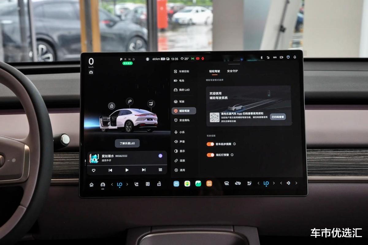 25款乐道L60的内饰偏年轻化,整体感觉比较温馨,“T”字形中控台前方,是其多功能皮质方向盘,附带加热、记忆等功能,而电子式怀挡的设计,操控也比较方便。方向盘旁边是17.2英寸的高清中控屏,它采用高通骁龙8295P芯片,匹配的是SkyOS天枢车机操作系统,像5G网络、语音识别、应用下载等功能系数支持,尤其是可见即可说功能,但凡出现在车机界面的,它都能用语音控制,开车途中就不用手动操控那么麻烦了。其次,车内还配备了1600万色主动式环境氛围灯,海量色彩,随心切换,格调感直接拉满。车内虽然没有配备仪表盘,但它配备了投影尺寸13英寸的HUD抬头显示系统,各种实时路况信息都能直观地展示在前挡玻璃上,掌握行驶数据更方便。