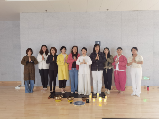 活动现场,暖黄色灯光轻柔铺展,瑜伽垫上整齐摆放着泛着金属光泽的颂钵,空气中萦绕着淡淡的薰衣草香。青岛市健身瑜伽运动协会会长高琳以一段温柔的开场白,为都市人紧绷的神经按下“暂停键”:“在快节奏的生活里,我们常常忘记倾听自己的内心,今天,让我们把时间还给自己。”