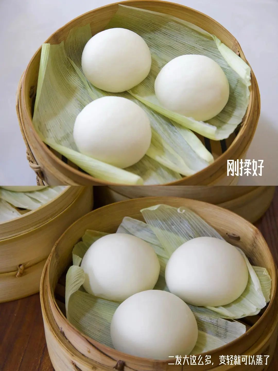 6、一发过后给把面团揉软揉光滑,揉得越久组织越细腻越好吃,分成小剂子后,把每个剂子揉成光滑的小面团,二次发酵至面团变大变轻就可以上锅蒸了,冷水蒸20分钟后,不要着急打开,关火焖5分钟再出锅。