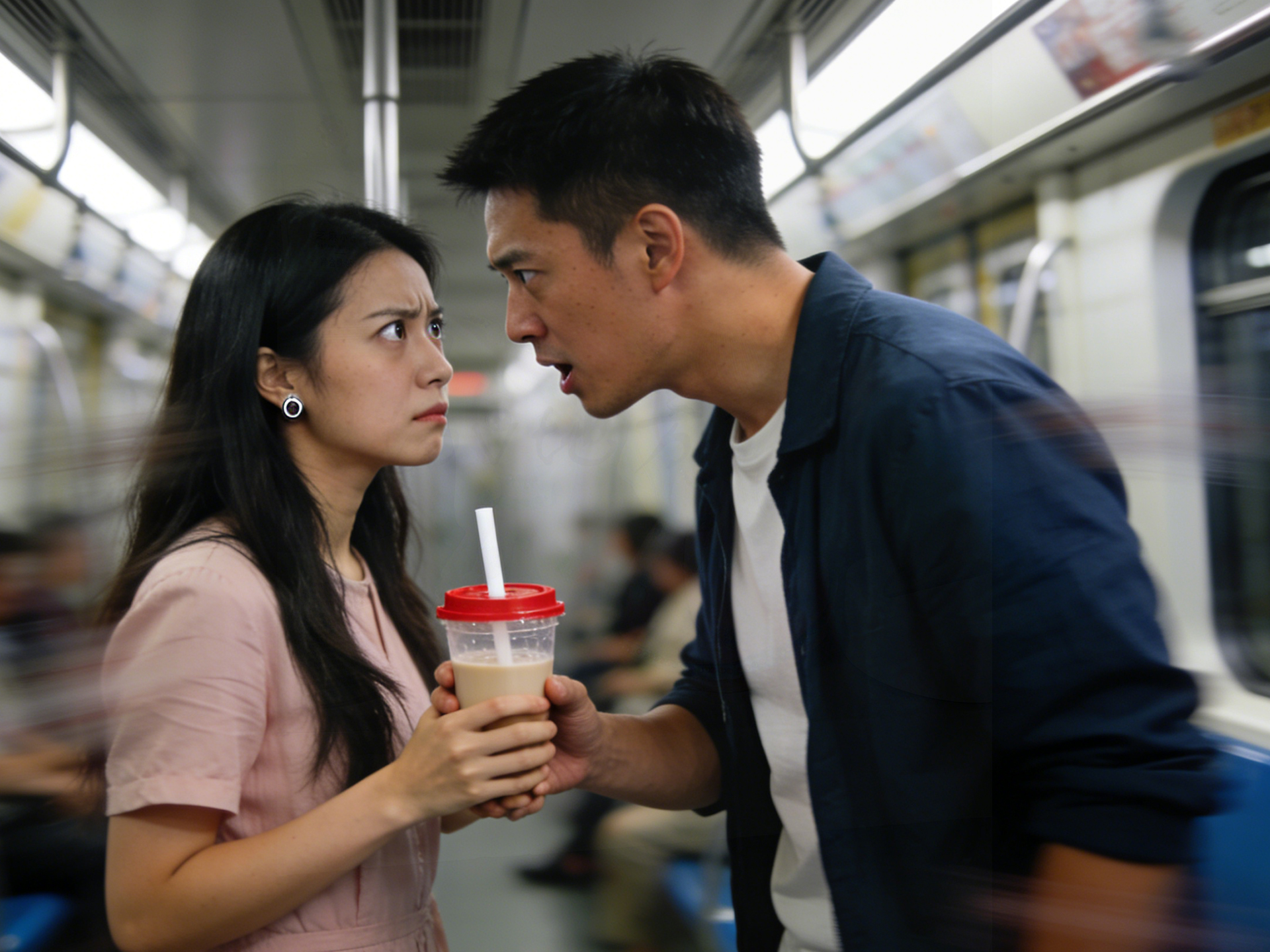 电梯里,他忽然抬手把她头发揉乱;地铁上,他抢过她的奶茶先喝一口。