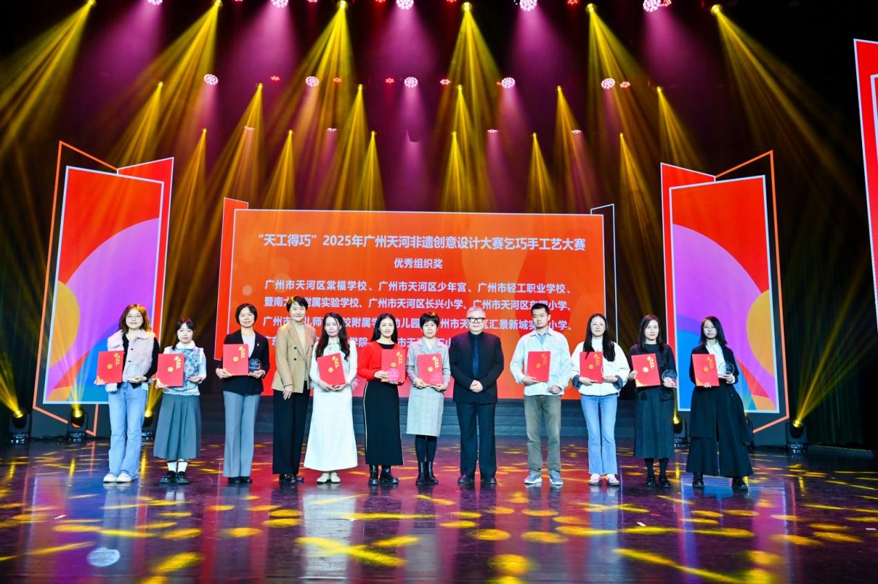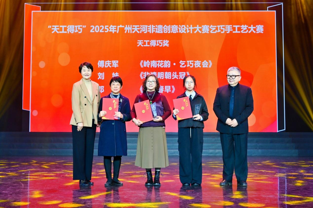 活动现场隆重颁发了“天工得巧”2025年广州天河非遗创意设计大赛暨乞巧手工艺大赛的一等奖、天工得巧奖以及优秀组织奖。这不仅是对创作者匠心与巧思的最高礼赞,也是对所有积极投身于非遗保护事业的参与组织单位的一次集中表彰。本次大赛共收到230件参赛作品,最终评选出天工得巧奖、一等奖、二等奖、三等奖、优秀奖、优秀组织奖及组织奖等奖项。这些脱颖而出、创意盎然的优秀作品,不仅展现了非遗手工艺的精湛绝伦,更彰显了传统技艺在当代设计中的无限可能。