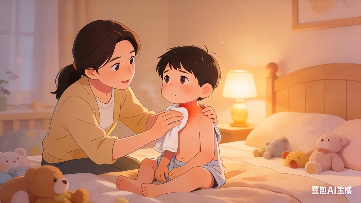 体温超38.2℃,在医生指导下用儿童专用退热药(对乙酰氨基酚或布洛芬),按年龄、体重算剂量,尽量不要两种药交替吃。