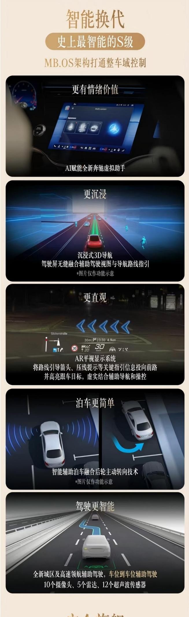 在关乎“坐得是否熨帖”这件事上,S级向来有一套。 新款升级了“智能魔术车身控制”系统,它的空气悬架不仅能实时扫描路面,现在还多了“记忆”功能,可以学习你常走路线的颠簸情况,提前调整好阻尼,让舒适性再上一个台阶。后轮转向也成了标配,让这个超过5米3的大车,在市区掉头挪车能灵活不少。