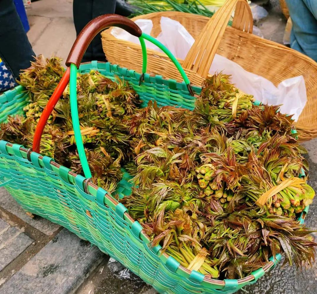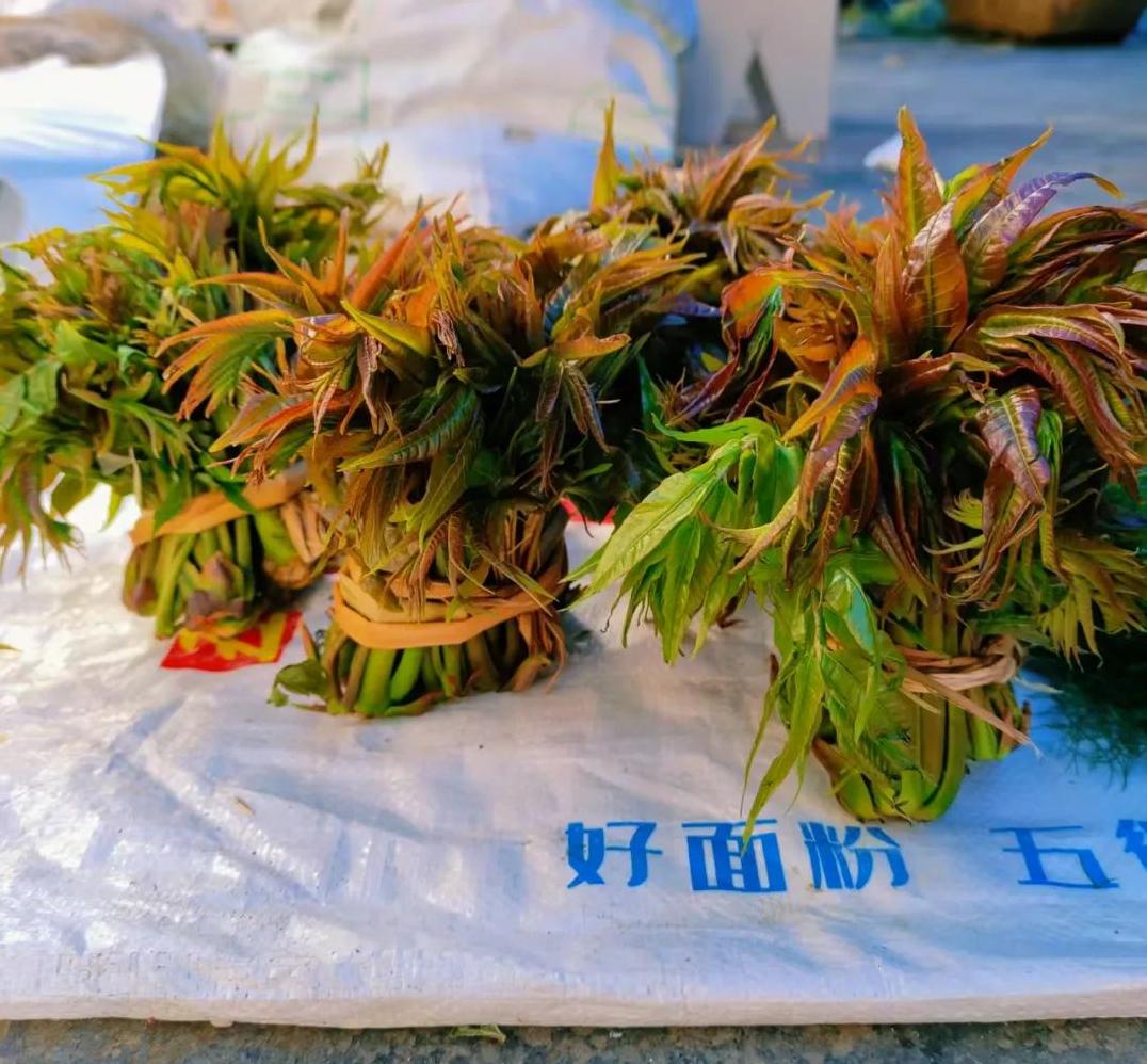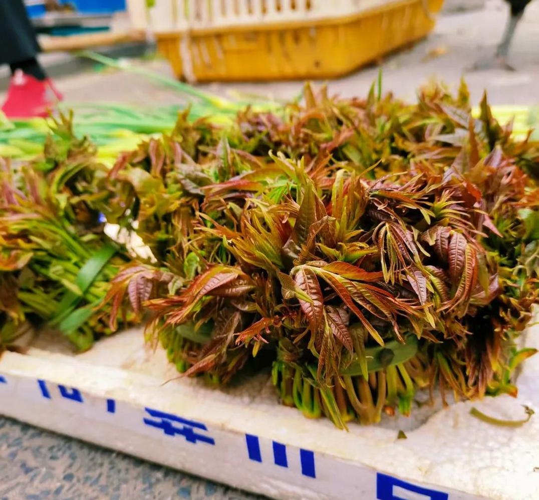 往往在农贸市场里,一把具有露珠的椿芽很快就被用来装饰菜篮,每家每户都期盼着用它烹调出属于春天的美味。