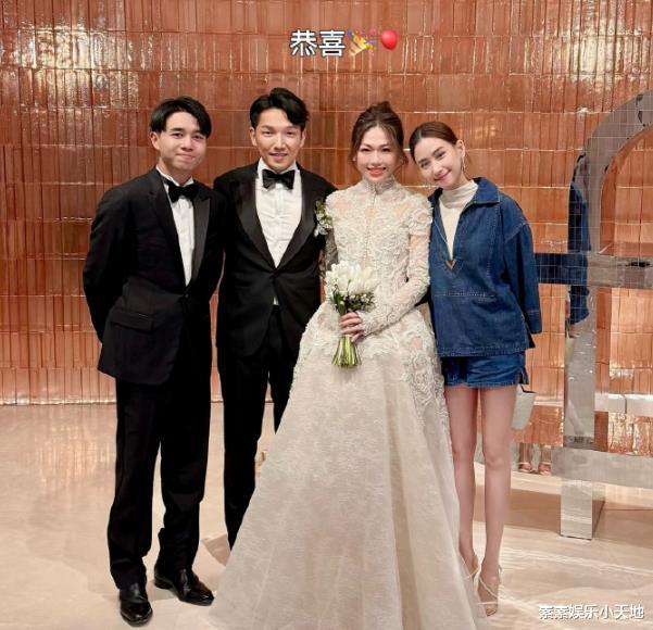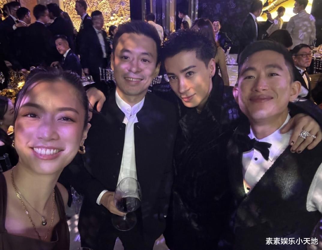 Namfon和霍启仁一起出席圈外名媛好友的婚礼,在婚礼现场的年轻人一起举杯欢庆,分享属于香港名流上层社会的朋友动态。