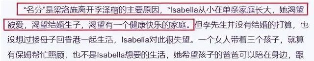 当年有爆料说梁洛施和李泽楷分开的主要原因是因为他无法给自己名分。
