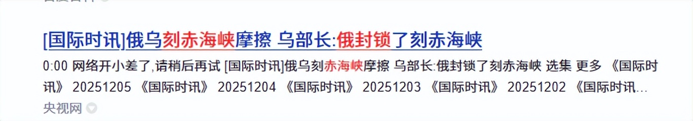 本文信息来源:央视网——[国际时讯]俄乌刻赤海峡摩擦 乌部长:俄封锁了刻赤海峡