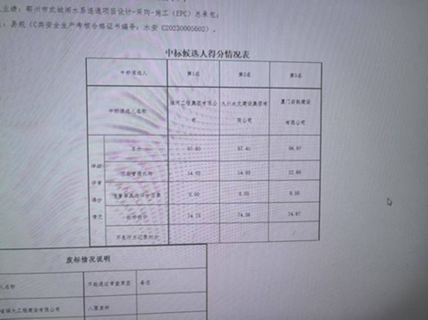 各位看官:此次的项目招标,第一次公示的分数,淮河工程集团有限公司以97.6分排第一,厦门安能建设公司以96.97分排第三;三天后招标单位发通知重新评标和评分,同样一批评委,同样的评分标准,结果不一样,其间能没有“猫腻”吗?请问: