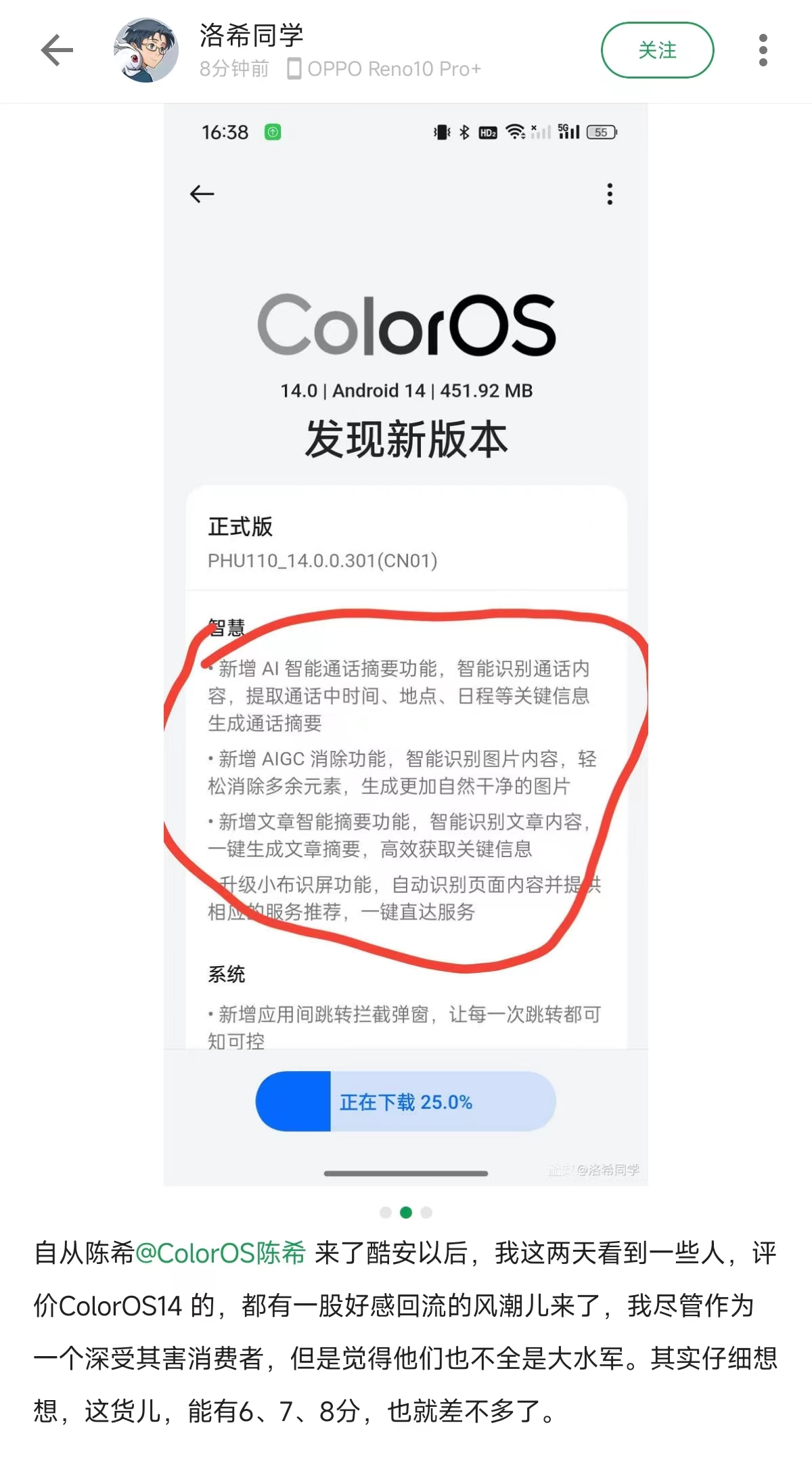 哇~万万没想到,过年前ColorOS 14竟然推送新版本更新了,而且这次升级还新增了不少功能,包括指纹盲解、摇一摇传感器权限禁止,就连Find X7上备受好评的AIGC消除也都一并下放了,难怪能得到这么多网友、博主的盛赞。 尤其是这个摇一摇传感器权限禁止功能,我真的是期待已久,现在的这些软件动不动就容易跳转广告,天知道有多烦人!!!这次更新之后,直接就能在设置里禁止传感器权限,再也不用担心从微博跳到淘宝了,呜呜呜……