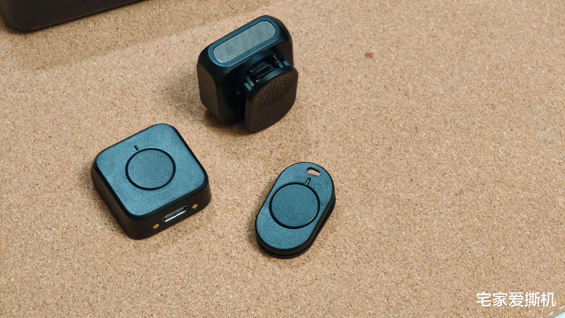 内部的装有2个TX发射器,1个接收器。发射器造型方正,正面带有4个指示灯,根据图标分别对应指示电量、无线连接、静音这些功能。侧面2个按键分别是电源开关和工作模式调节。