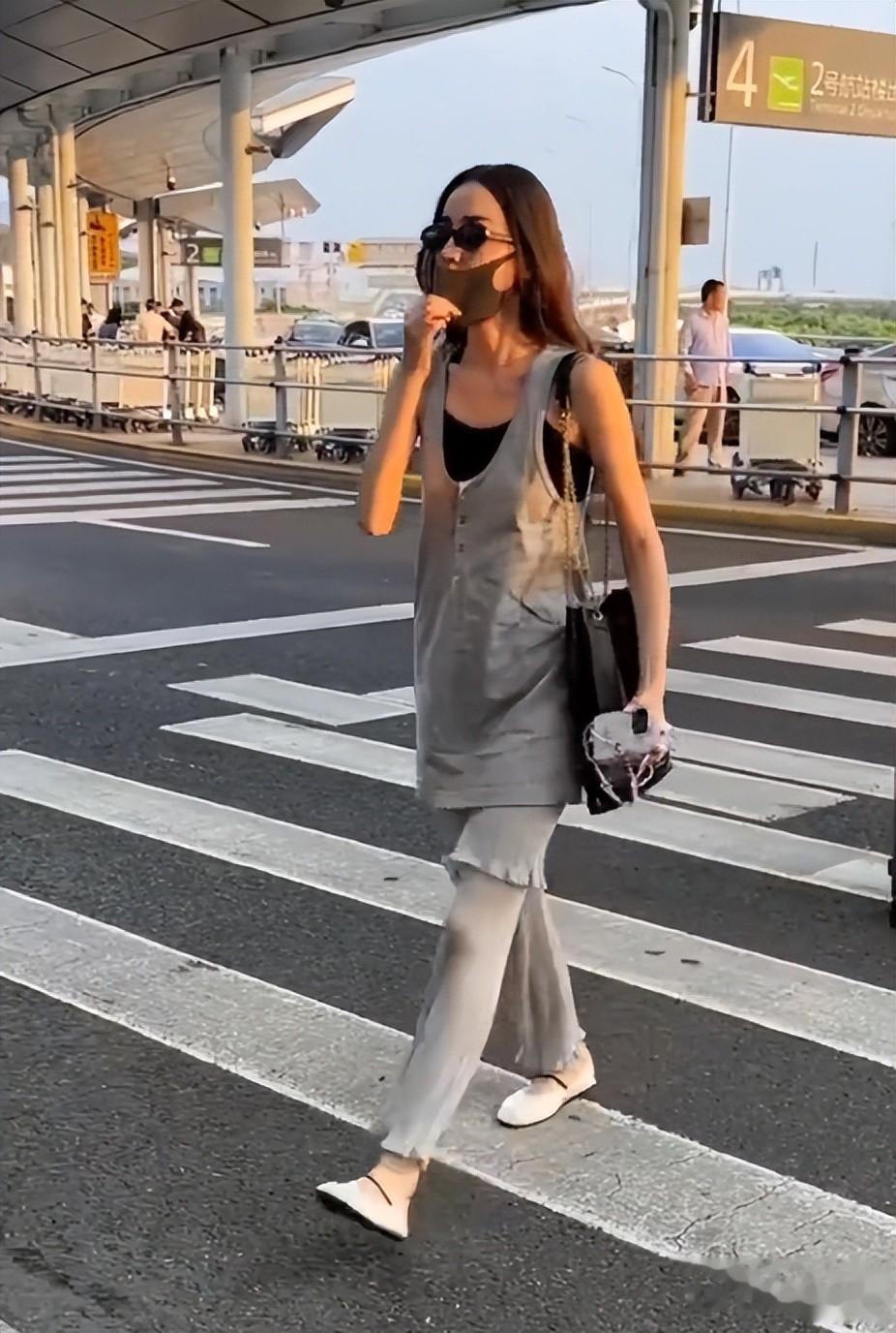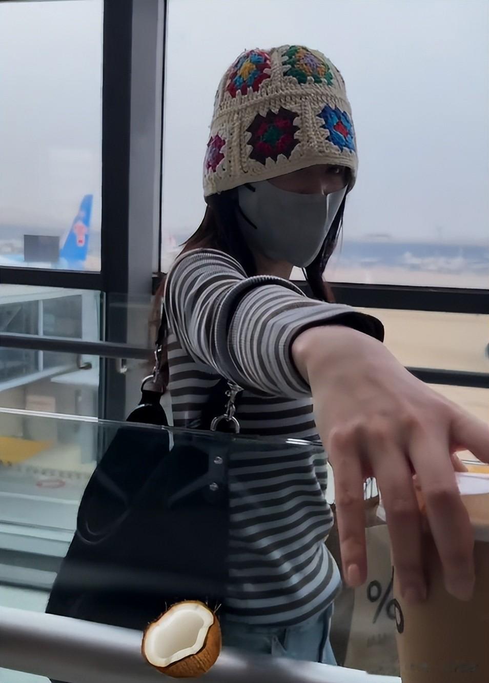 之前在机场被偶遇,穿着条纹上衣看起来特别的有朝气。