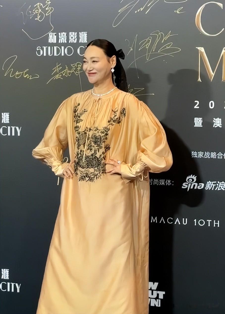 惠英红这老将是咋回事,怎么穿着黄色的睡袍就来了。