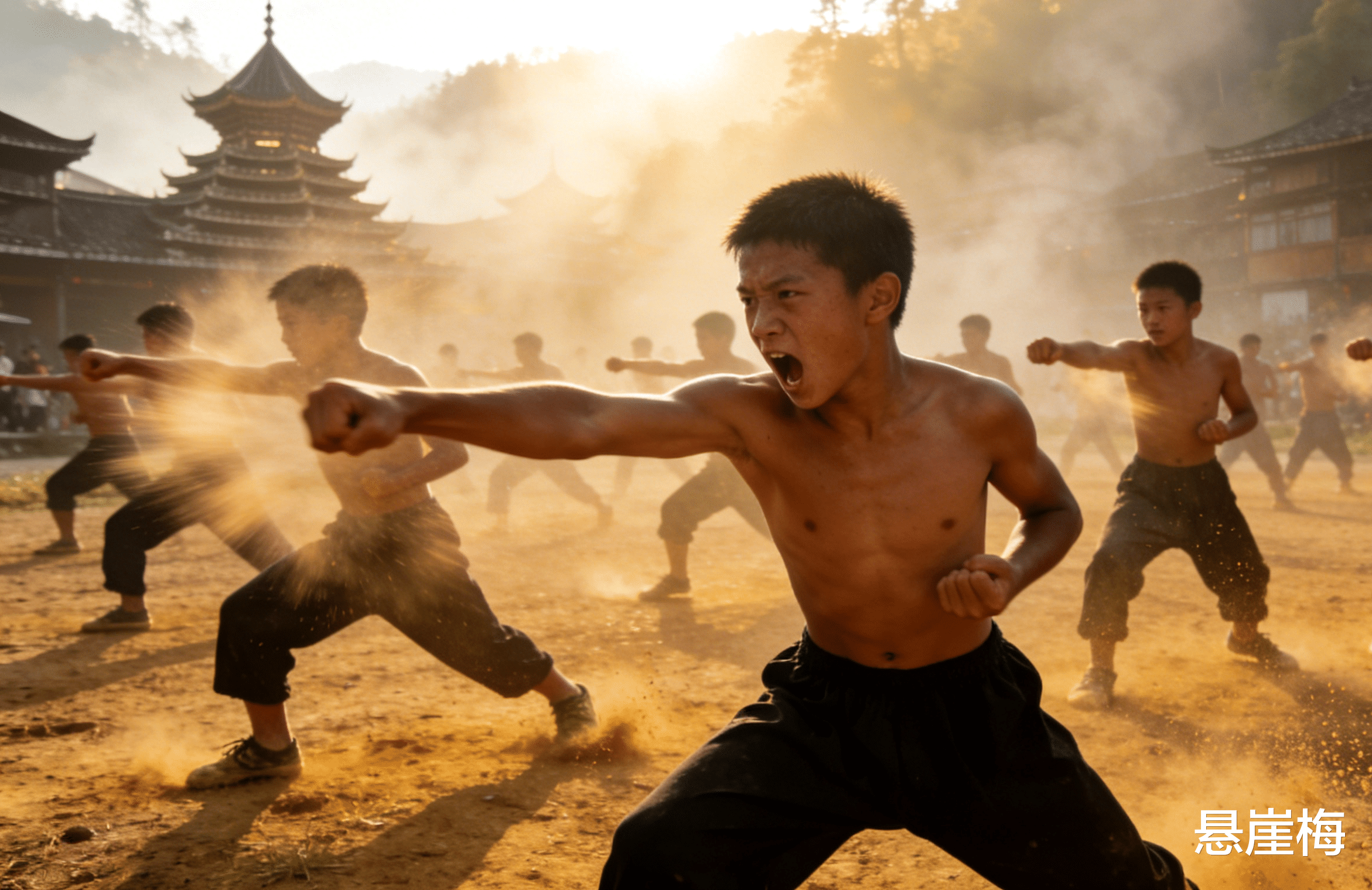 晨光刚撕开雾,场子已聚了二三十号半大少年,个个赤着膀子,露出精壮的腱子肉,呼喝练拳。拳风呼啸,脚步蹬地,震得黄土场子扑簌簌掉渣。