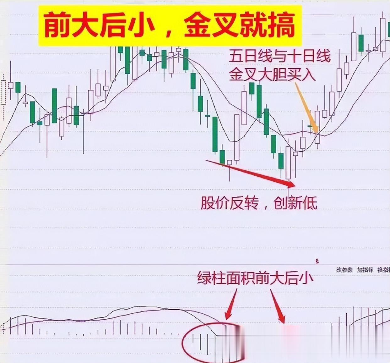 介入口诀:“前大后小,金叉就搞”,市场上大家都是追涨杀跌,然后我这位朋友是反着操作的,股价下行途中,macd绿色柱“先大后小,出现金叉”就是介入机会。意味着下行放缓,空头释放,行情随时反转上扬。