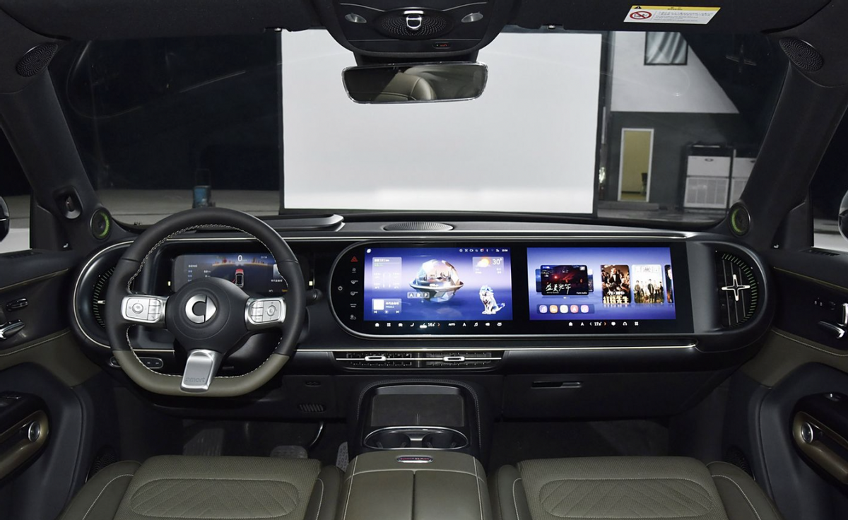 除此之外,内饰也将科技化配置拉满,三块屏幕的中控副驾驶也照顾到了,尤其是车规级的全彩激光投影仪,看上去很酷,但我想说,太不实用了,这成本不如升级座椅或动力配置。还有,2900mm的轴距尺寸空间不用担心,动力CLTC最高续航里程740km。