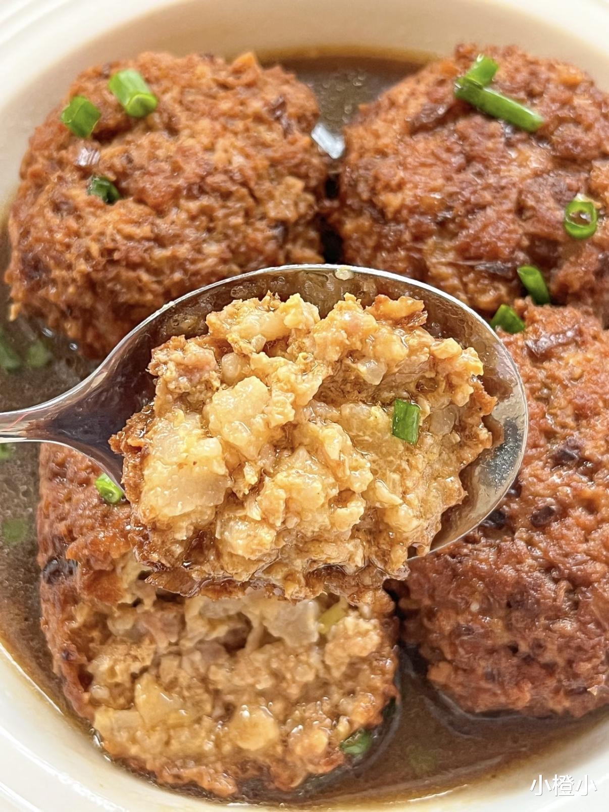 狮子头+汤汁浇热米饭,戳开肉球,肉汁像“小喷泉”;或者丢两颗进白菜豆腐锅,秒变“低配版佛跳墙”,连汤都喝净!