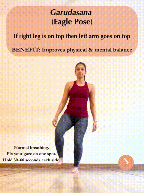 动作2,鹰式(Garudasana)