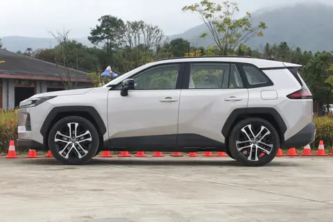 该车长宽高4600/1855/1680mm,轴距2690mm,前轮毂距1600mm,后轮毂距1620mm,转弯半径小至5.7m,较老款长度略减,比例更匀称,行驶灵活性有一定提升。外观延续海外版RAV4新款设计语言,硬派底色与电感元素自然融合,新增双色车身契合年轻审美,试驾时多次被误认为新能源车型,贴合当下潮流。