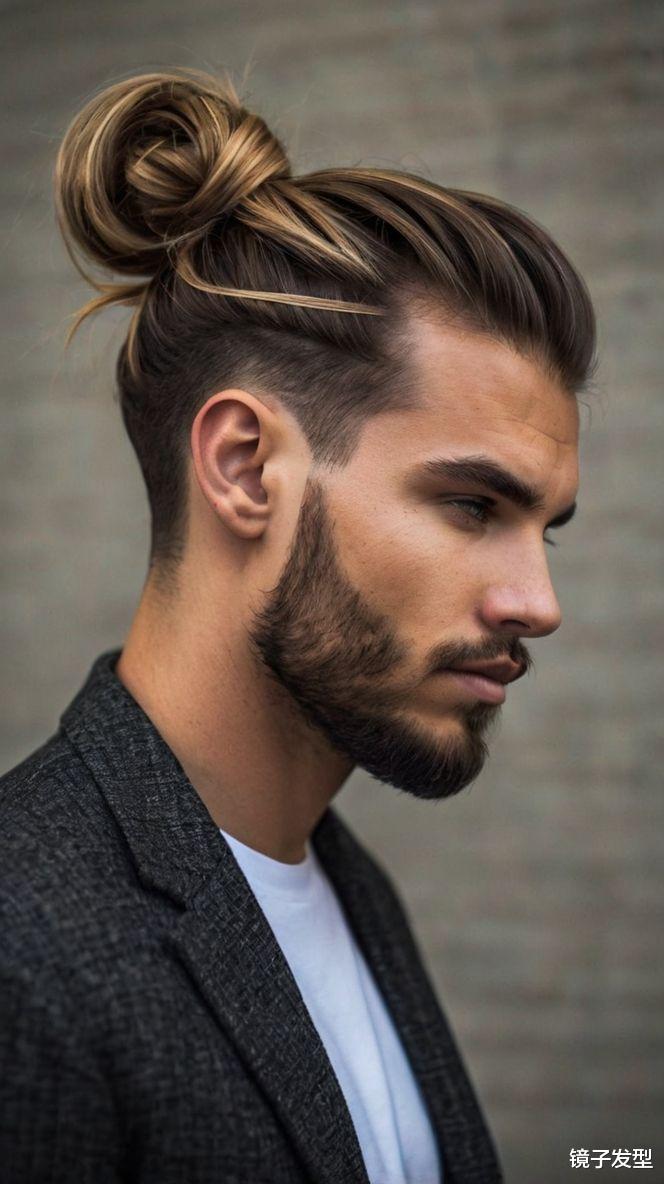 对于喜欢简约风格的男士来说,干净利落的高丸子头搭配两侧剃短的设计堪称经典。