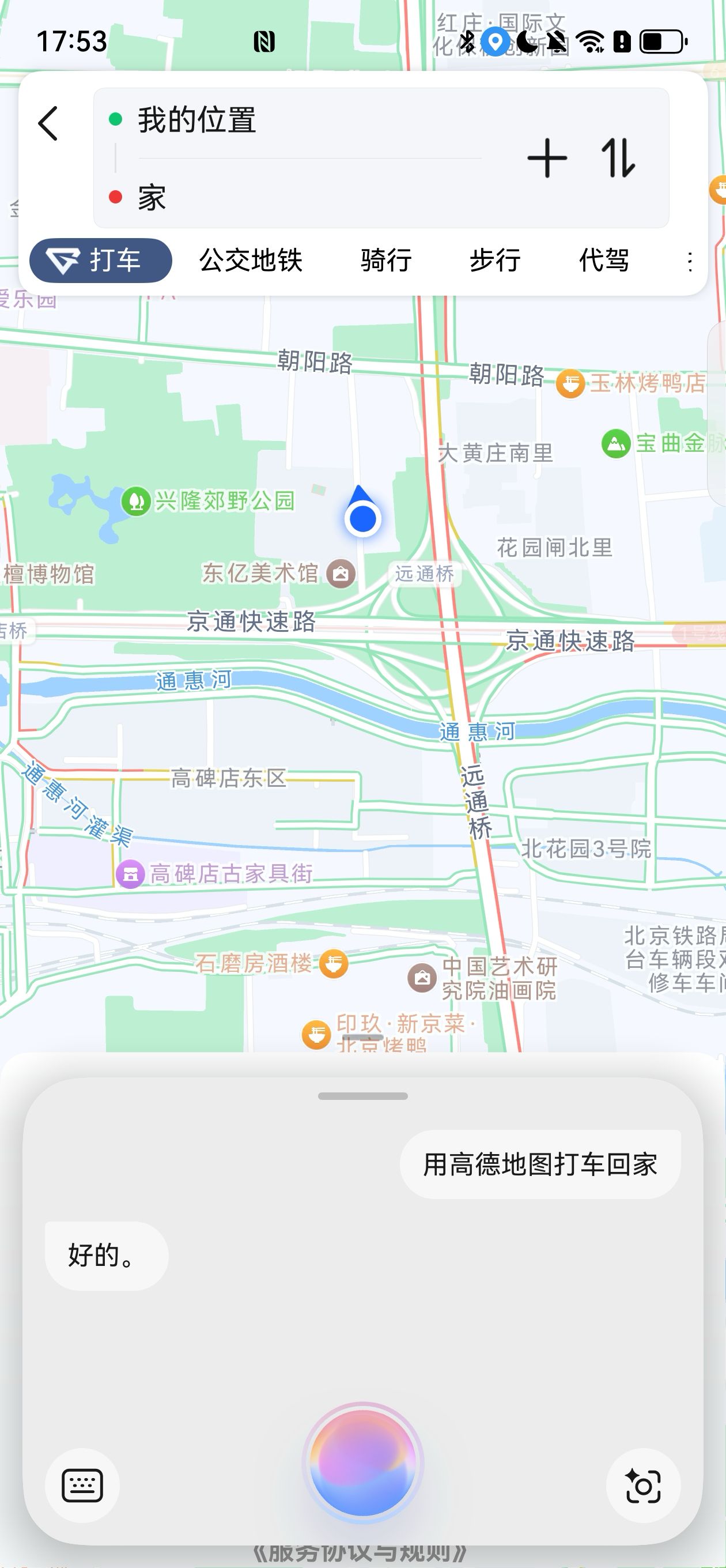 鸿蒙原生版高德地图还接入了原生鸿蒙意图框架后,当我直接对小艺说“导航回家”或者“用高德地图打车去公司”等指令时,系统就能精准拉起高德地图,进行导航或打车,省去了手动操作的麻烦。和安卓、iOS相比步骤减少了70%,对着急上下班的打工人来说超级友好!