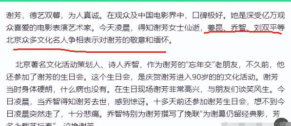 在得知谢芳去世的消息后,圈内很多文化名人都为她进行了缅怀,比如“国家一级演员”姜昆、“著名诗人策划人”乔智、“本山传媒艺术总监”刘双平......