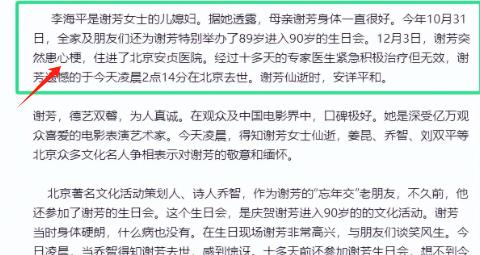 谢芳儿媳妇儿李海平称:“母亲这次去世的主要原因是因为心梗”!