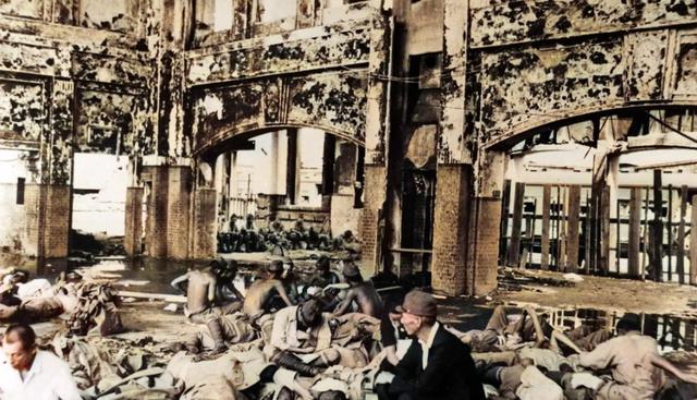 在经历了广岛原子弹的爆炸之后,无论当时的人们感到怎么悲伤,生活依旧要继续,这张照片拍摄的场景就是广岛原子弹爆炸之后,人们对受灾地区进行抢修的过程,面对这些断壁残垣,或许人们对发现生命痕迹的期待已经接近于零了吧。