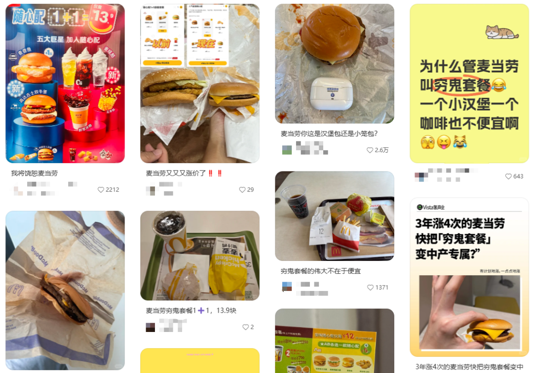 麦当劳涨价减量遭到大量吐槽 图源:小红书