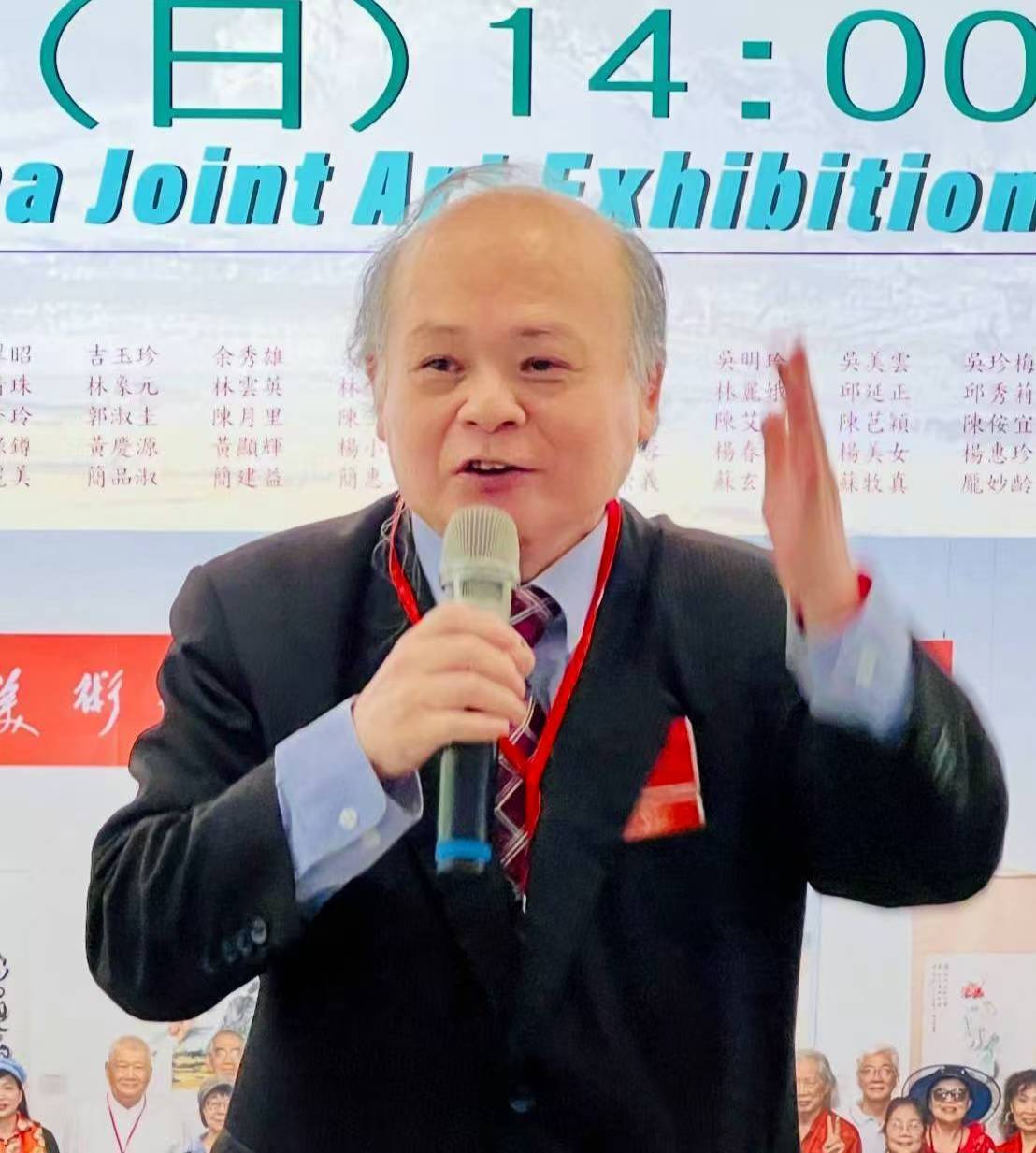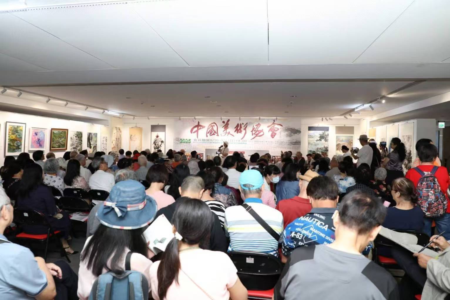 台湾中国美术协会创立于上海1931年,是百年的民间社团,以发扬中华文化思想为主轴,借书法,国画,油画,水彩,版画,设计,摄影为创作载体,推广优秀的美术作品,协会在理事长李沃源率领下,是台湾美术社团中最多人才,最多画种,最多样方式呈现的美术团体 ,为了文化传承,今年特别安排顾问蔡登辉六位孙子女,7岁至17岁六次前往大陆各省采风写生,其中十七岁蔡乔颖,在多次宴席演唱自己作词作曲歌曲,获得各地热烈掌声,今天也和大会邀请川剧变脸传人女高音歌手陶秀华担任开幕演唱歌手,老中青融合一起,场面热烈温馨不同于一般开幕式,理事长除了颁发〔终身成就奖〕给王恺及李可梅(96岁现在加护病房中,女儿李德珍理事代表授奖)表彰他俩一辈子奉献美术,推广教育,优异创作的展现,给与最高的敬意。
