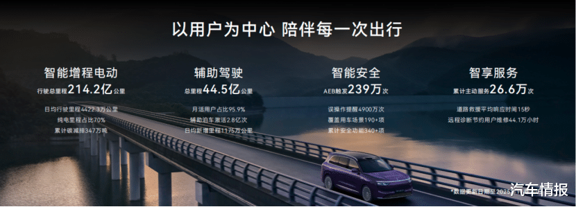 与此同时,问界智能化体验的实际落地数据更值得一提:辅助驾驶总里程超44.5亿公里,日均新增超过1175万公里。何利扬分享的“AEB主动避免潜在碰撞239万次”的数据,在一定程度上反映了其智能安全技术已具备相当规模的现实场景验证。