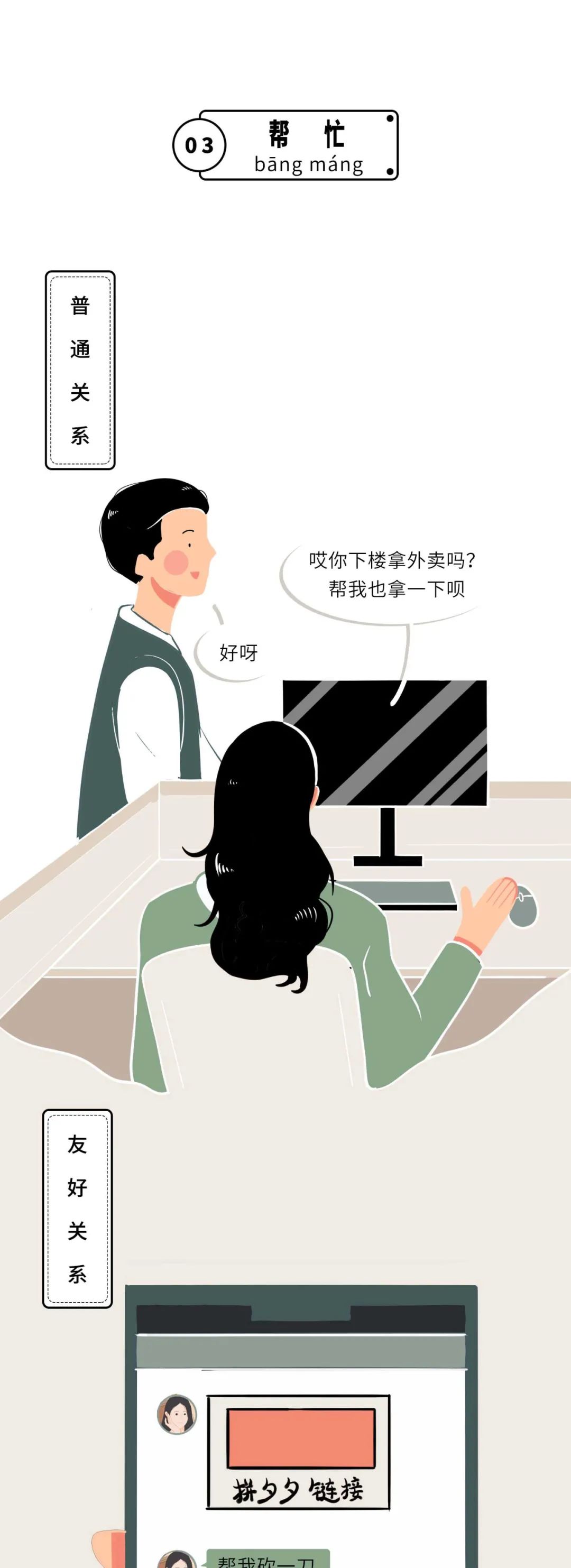 普通朋友就别勾肩搭背摸头啦!递东西、握个手够够的,聊天聊工作聊剧就行,收入感情史别瞎问,显得不礼貌还尴尬!