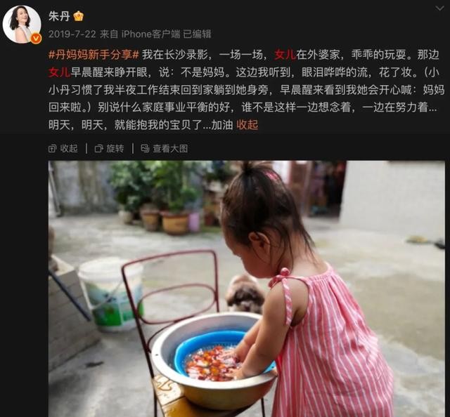 翻看朱丹过往在社交平台的动态,里面记录了很多与女儿的相处点滴,看完之后很感动。
