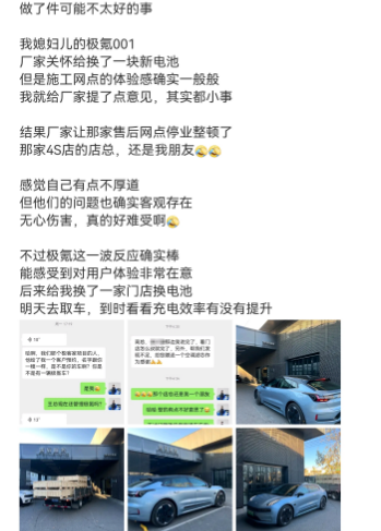 无独有偶,社交平台也有极氪车主发博称赶上网点服务有点跟不上,极氪厂家直接让那个店停业整改,还专门安排了另一家门店对接。这事儿当时讨论挺多的,网友纷纷评论品牌敢对自己人 “下狠手”,极氪这波是把车主意见放在心里了。